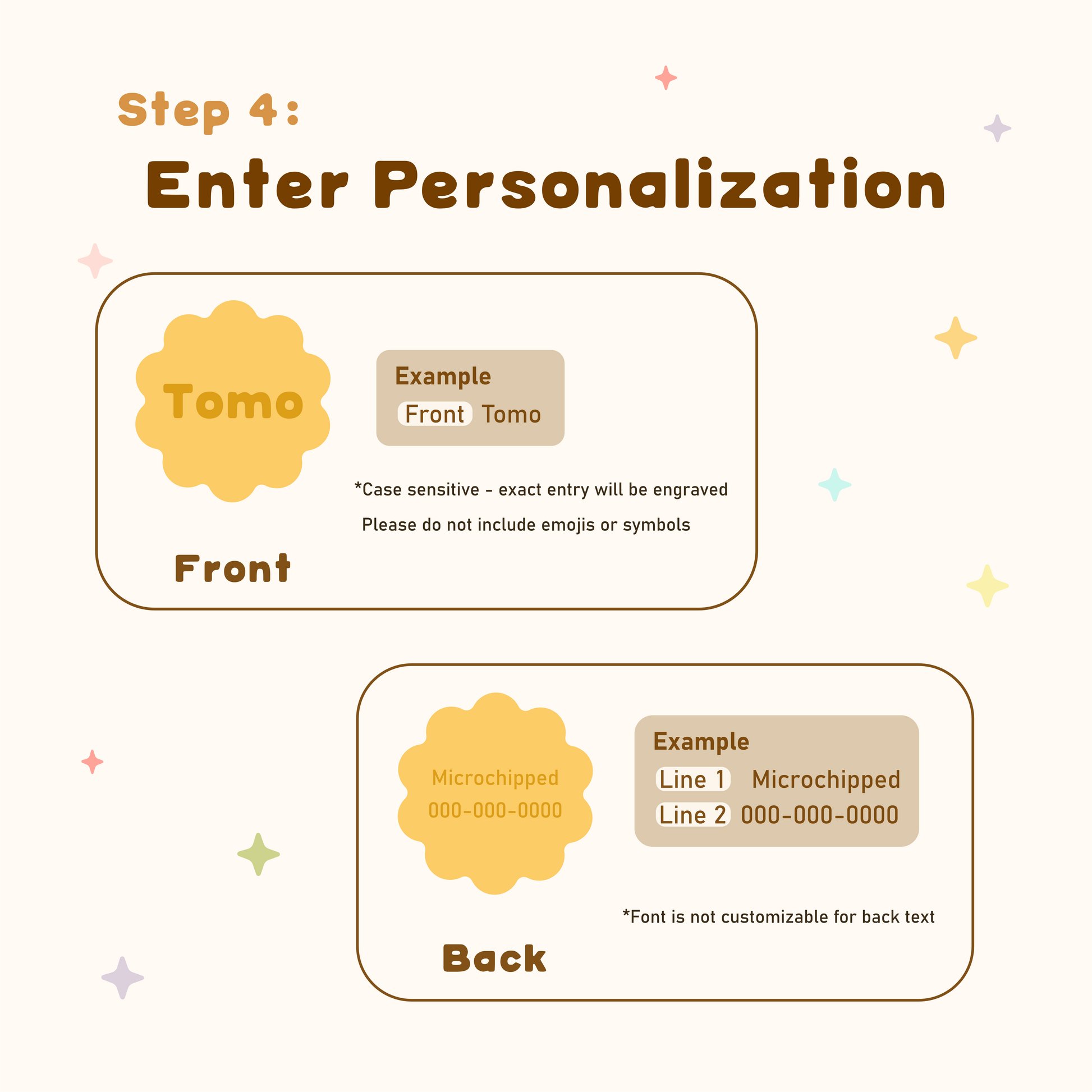 - Customizable – Choose your favorite color + font style to match your pet’s personality.