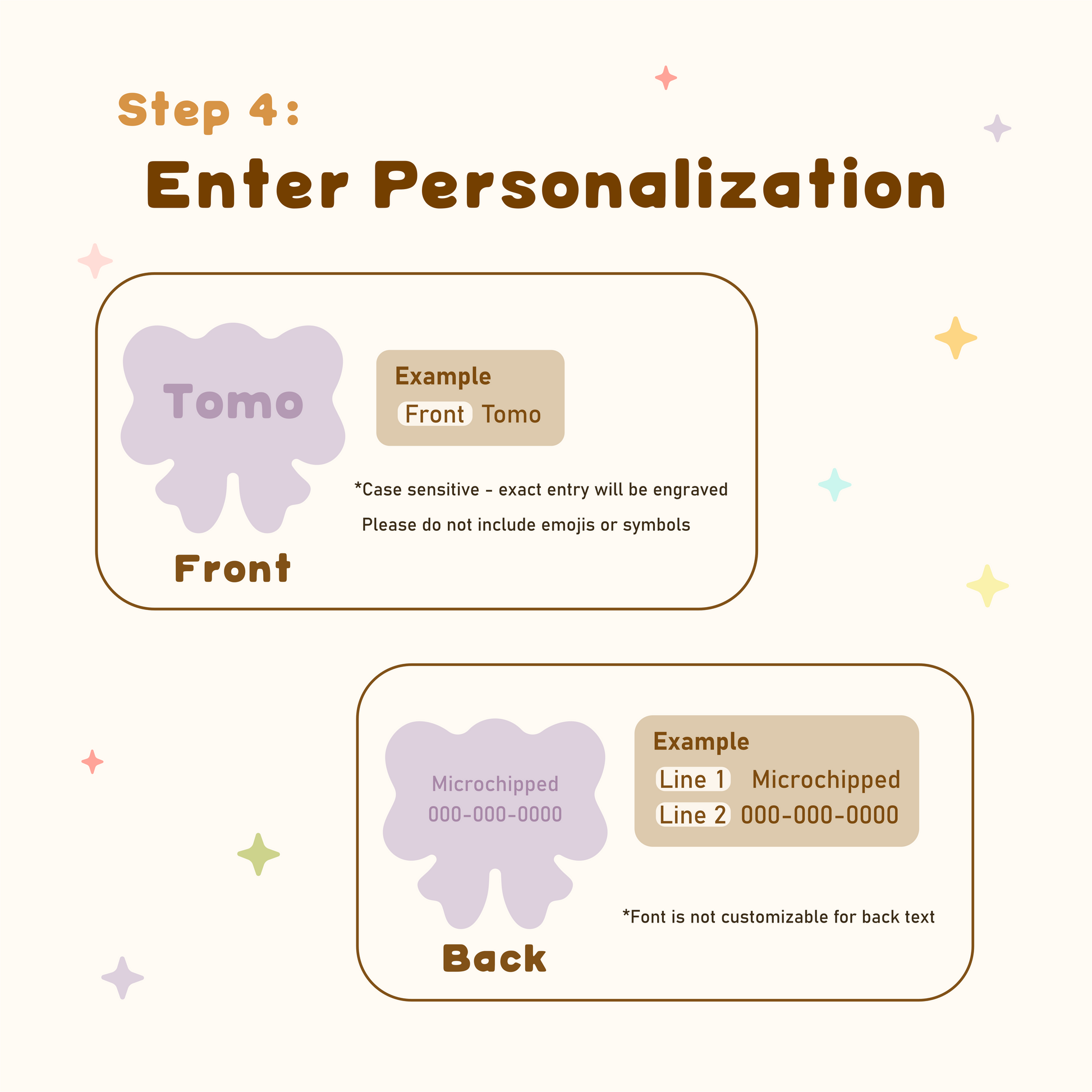 - Customizable – Choose your favorite color + font style to match your pet’s personality.